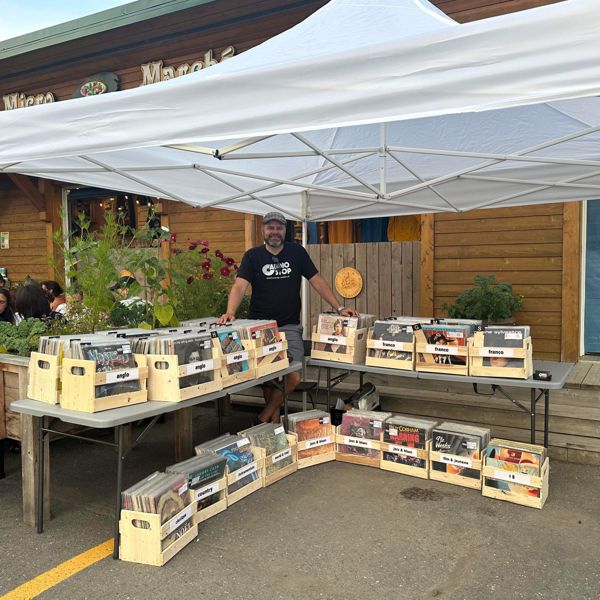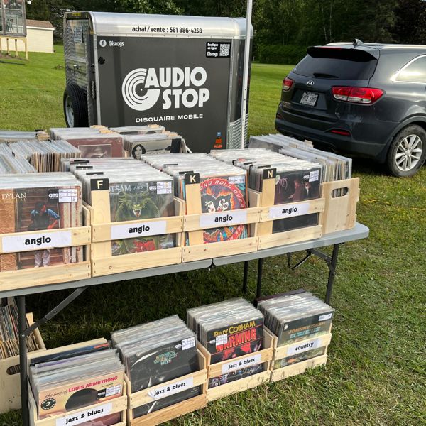 Au départ, l’idée a été imaginée par Sébastien Cantin, designer graphique et entrepreneur, animé par une forte passion pour la musique et les disques vinyles. Le premier concept se voulait mobile : amener la boutique là où se trouvent les passionnés de musique — que ce soit dans les festivals, les événements culturels ou toute autre activité festive — grâce à une petite remorque cargo aménagée en magasin ambulant. Le nom AudioStop fait d’ailleurs référence à cette mobilité, en clin d’œil au concept de l’auto-stop. Pendant deux étés, la petite remorque a été aperçue lors d’événements un peu partout en Gaspésie.